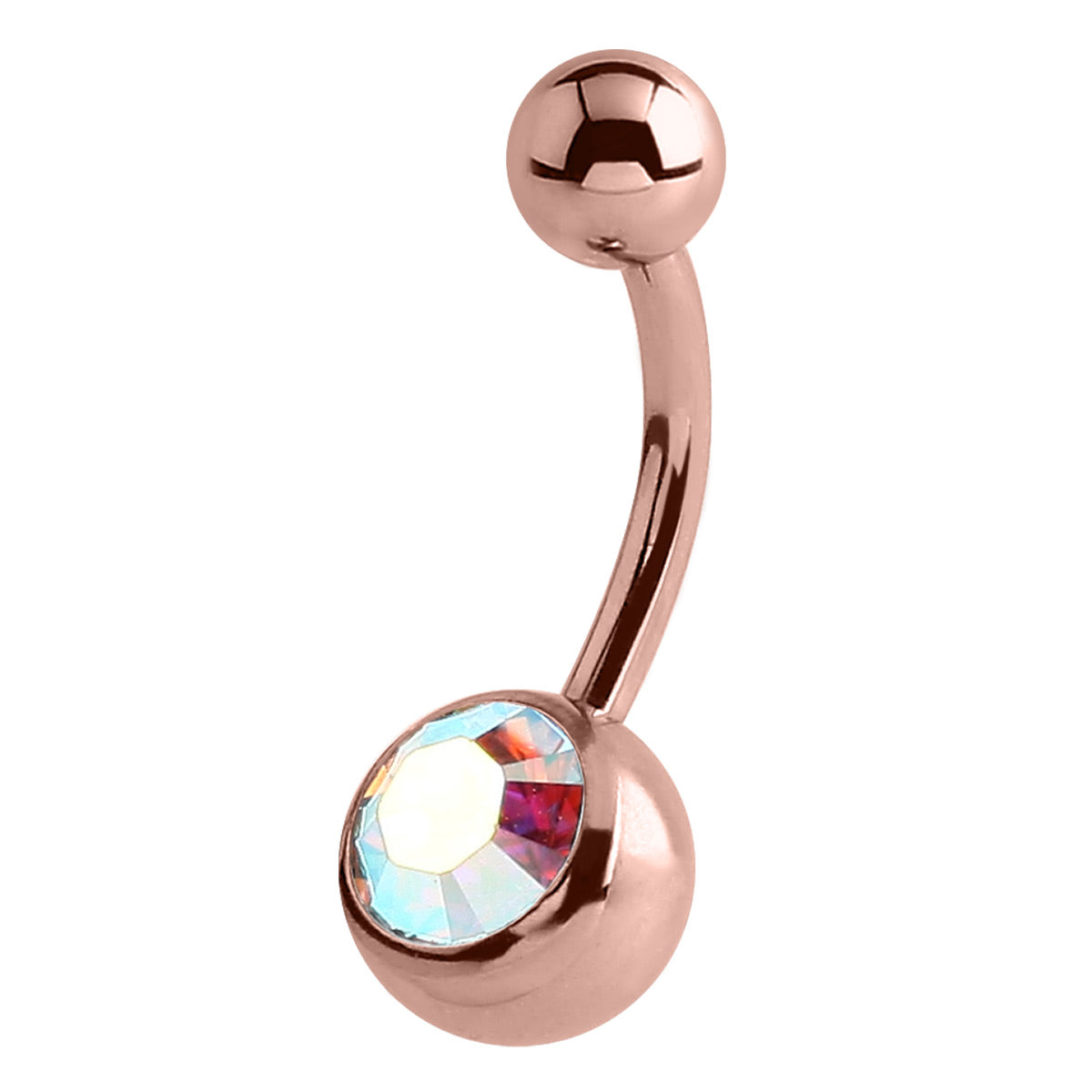 Rose Gold Steel Single Jewelled Belly Bars
