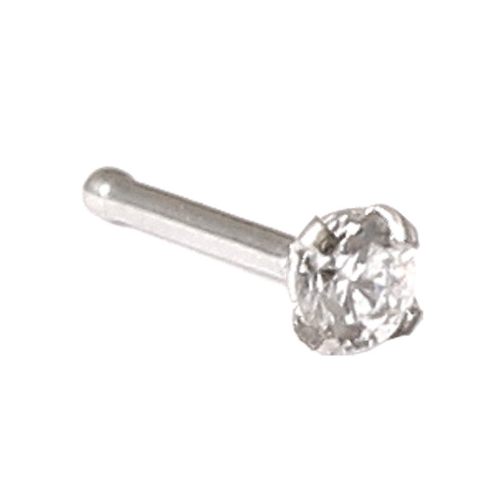 Steel Claw Set Jewelled Nose Bones with Crystal Clear Gem. Available in 2.5mm jewel size in 0.8mm gauge. Shaft has a slight bump at the end to help keep the stud in place. Nose Bones are also available in Titanium.