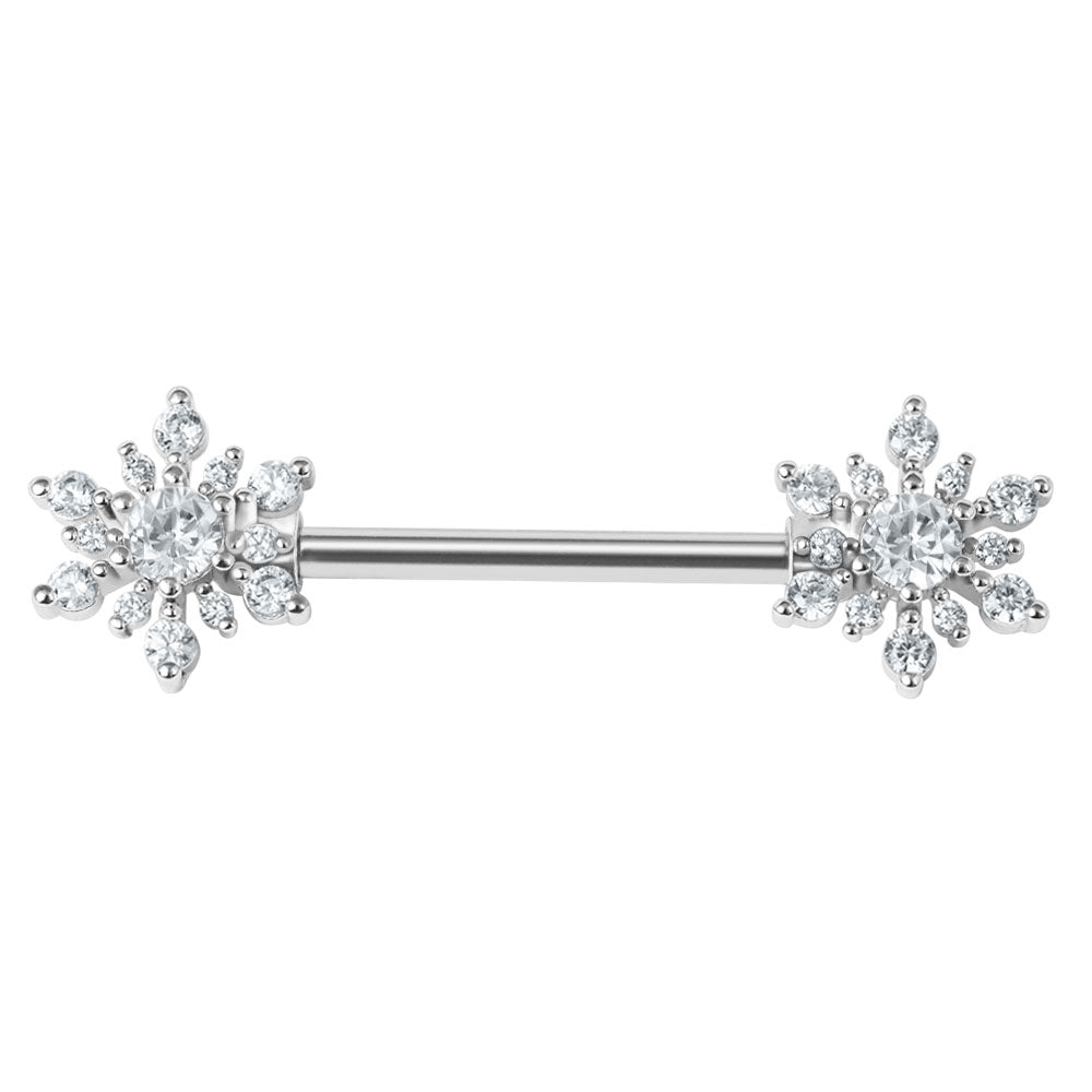 These Jewelled Sunburst Nipple Bars are absolutely gorgeous! The bar size is 1.6mm gauge, 14mm length and the ends are approximately 9mm. Also available as a Belly Bar.