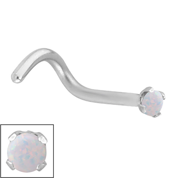 Surgical Steel Claw Set Synthetic Opal Nose Stud. Shaft is 0.8mm gauge, with the Synthetic Opal top being 2mm across.