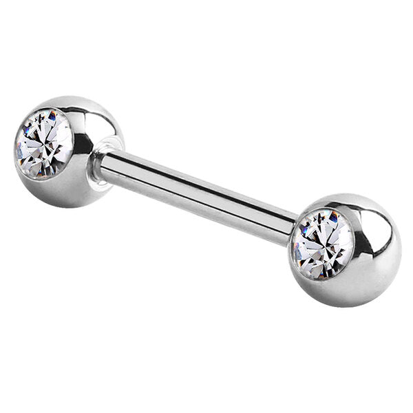 Steel Double Jewelled Nipple Bar - Front Facing Gems
