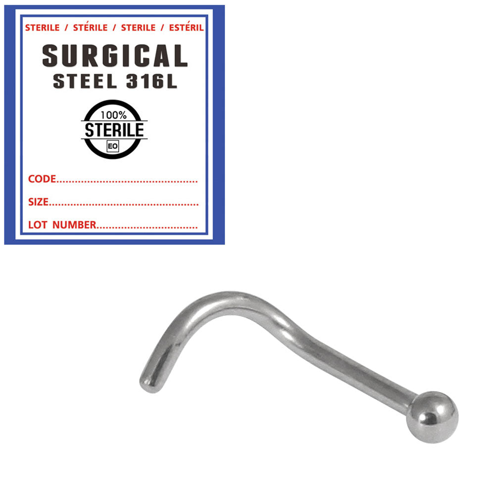 Sterile Surgical Steel Ball Nose Studs with a curved tail for easy fit. Ready to use, Sterile Steel Jewellery to help the body piercing professional. Very convenient! Ethylene Oxide (EO) Sterilisation for maximum quality and confidence. Pre-sterilised piercing jewellery is individually sealed, dated and sterile for up to 5 years.