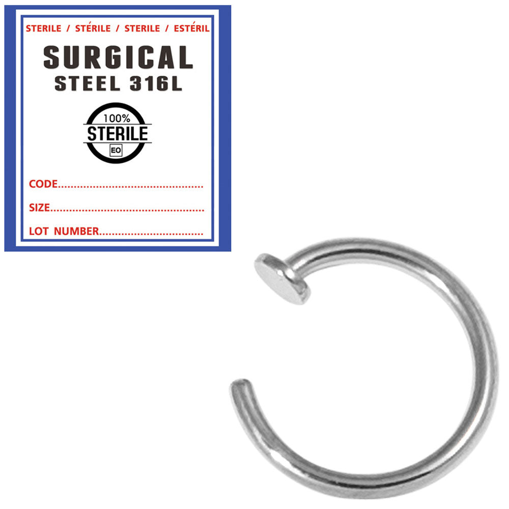 Sterile Surgical Steel Open Nose Rings. Ready to use, Sterile Steel Jewellery to help the body piercing professional. Very convenient! Ethylene Oxide (EO) Sterilisation for maximum quality and confidence. Pre-sterilised piercing jewellery is individually sealed, dated and sterile for up to 5 years.