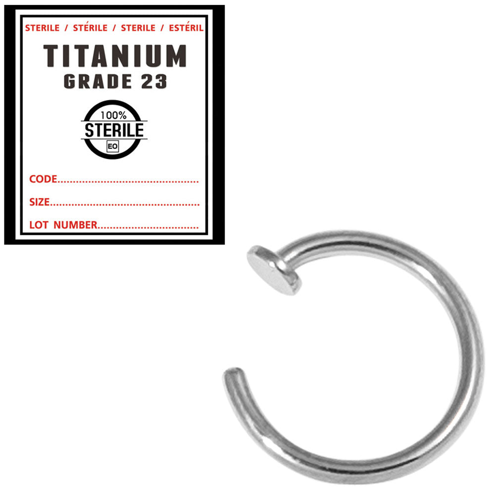 Ready to use Sterile Titanium Open Nose Rings to help the body piercing professional. Very convenient! Ethylene Oxide (EO) Sterilisation for maximum quality and confidence. Perfect for nose piercings, the small disc rests discretely inside the nostril with most of the ring showing. A great alternative to other nose jewellery. TDi Body Jewellery stock Open Nose rings in various materials and sizes. Pre-sterilised piercing jewellery is individually sealed, dated and sterile for up to 5 years.