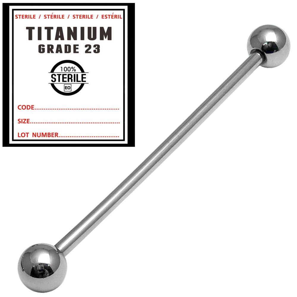 Sterile Titanium Industrial Scaffold Bars. Lengths 32mm up to 38mm. Ready to use, Sterile Titanium Jewellery to help the body piercing professional. Very convenient! Ethylene Oxide (EO) Sterilisation for maximum quality and confidence. Other lengths are available: range is from 10mm to 22mm. Pre-sterilised piercing jewellery is individually sealed, dated and sterile for up to 5 years.