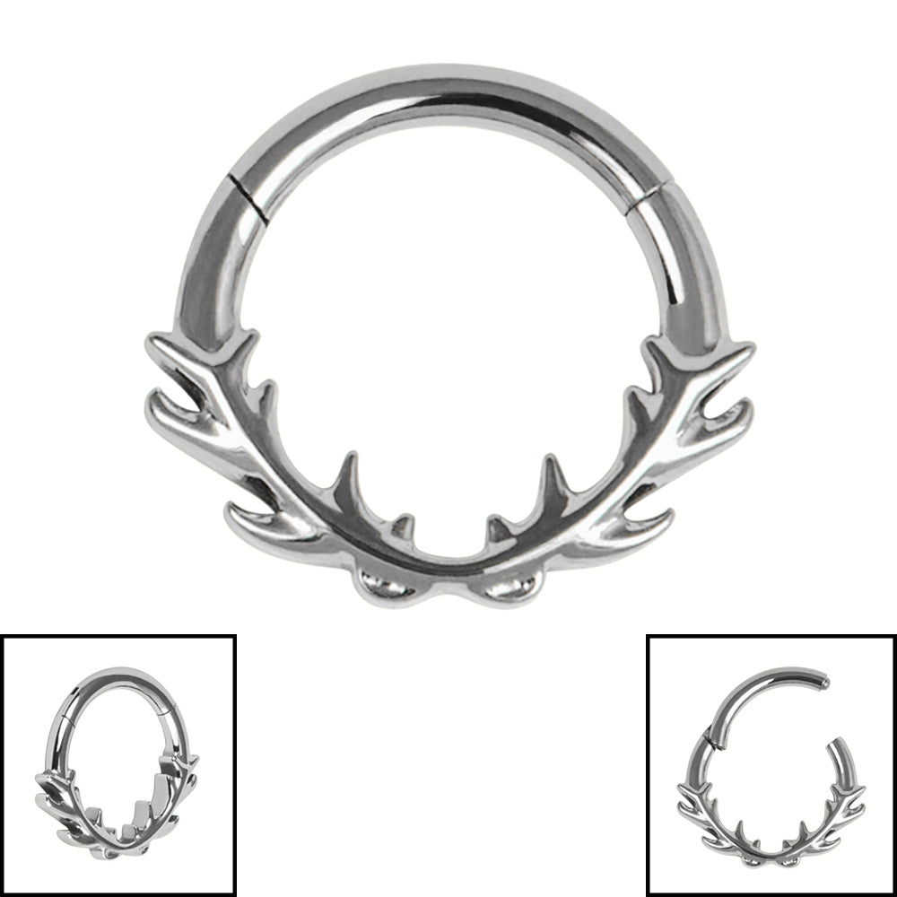 Titanium Buck Antlers Hinged Ring