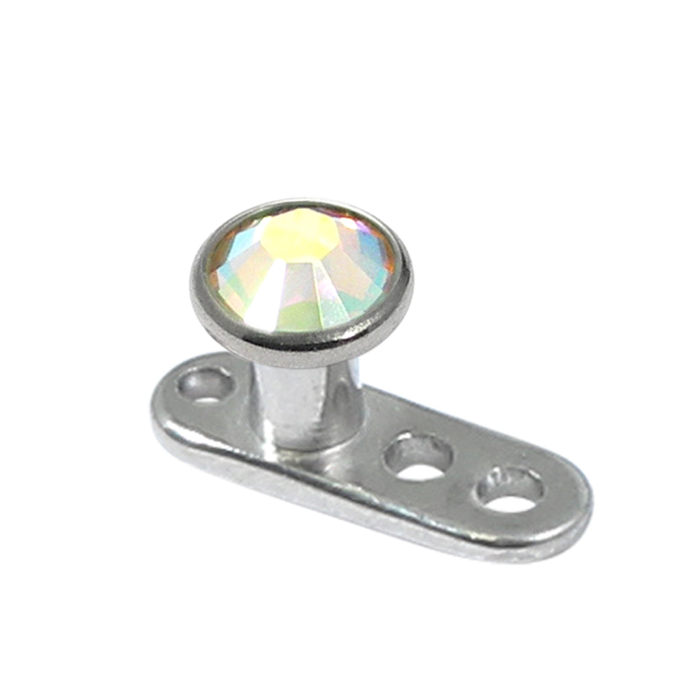 Jewelled titanium dermal anchors with 3mm jewelled disks - smaller than the usual 3.5 to 4mm jewels. Standard height of dermal anchors is 2.5mm but we also supply them with 2.0mm and 1.5mm height shafts. Base and attachment are titanium and can be autoclaved.