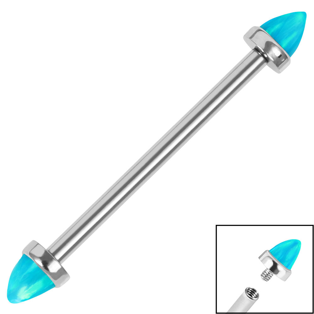 Titanium Internally Threaded Industrial Scaffold Bars 1.6mm - Titanium Bezel Set Synth Opal Cones