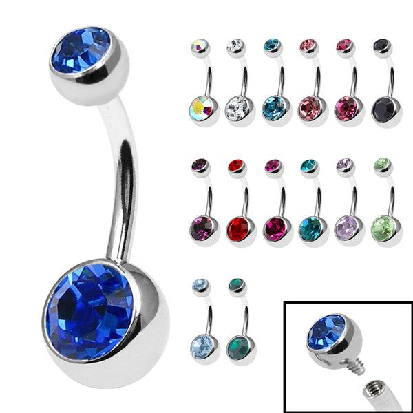 Titanium Internal Thread Jewelled Belly Bar - 14mm