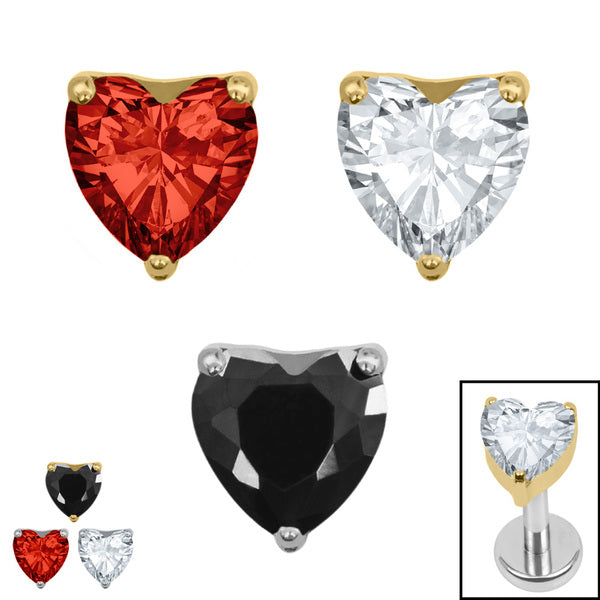Celebrate timeless romance with True Love, a beautifully crafted design Featuring a delicate heart-shaped solitaire stone secured in a refined claw setting. Titanium jewellery is perfect for new piercings. This attachment is approximately 4mm tall and 4mm wide and has the standard 0.9mm thread on it. It will fit TDi internal thread Labret Studs, Bars etc that measure 1.2mm gauge and is available in Mirror Polish or Gold Titanium.