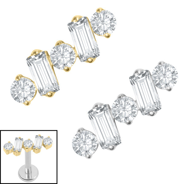 Titanium Internally Threaded Labrets 1.2mm - Gold Steel Claw Set CZ 3 Jewelled Baguette Fan