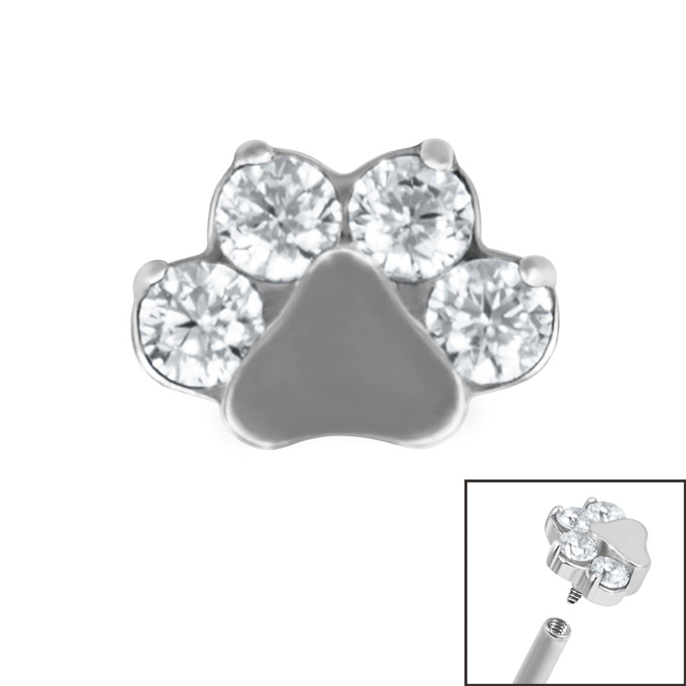 Titanium Claw Set Jewelled Paw Print for Internal Thread shafts in 1.2mm