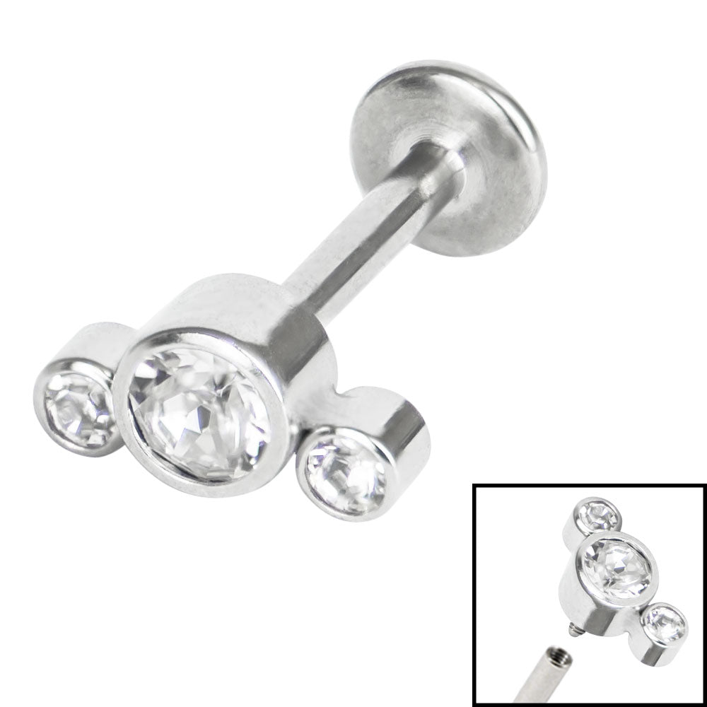 Titanium Internally Threaded Labrets 1.2mm - Infinity Titanium 3 Bezel Set Jewelled Crescent