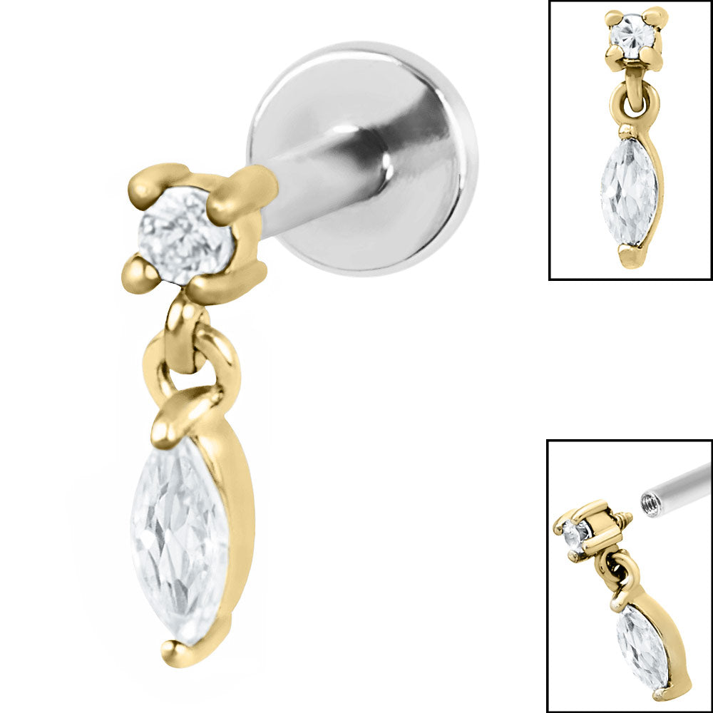 Titanium Internally Threaded Labrets 1.2mm - Steel Solitaire with Marquise Drop Gem