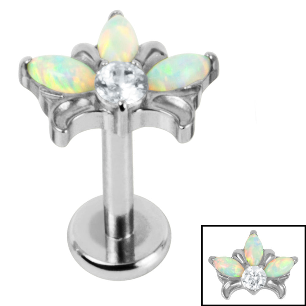 Titanium Internally Threaded Labrets 1.2mm - Titanium Claw Set Opal and Jewel Water Lily