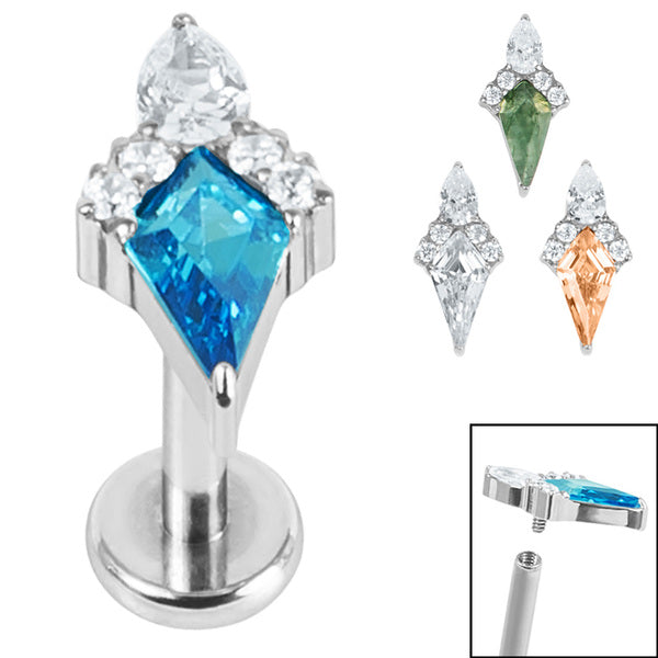 Titanium Internally Threaded Labrets 1.2mm - Titanium Claw Set Stella Jewelled Kite