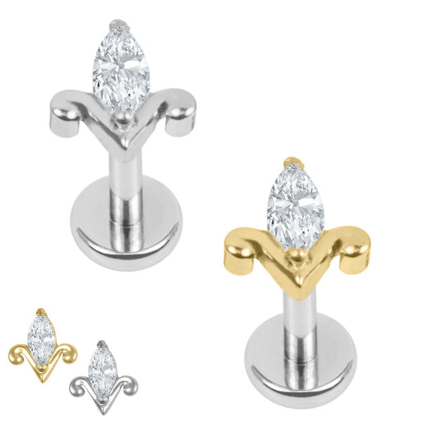 Titanium Internally Threaded Labrets 1.2mm - Titanium Jewelled Lotus Marquise Fan