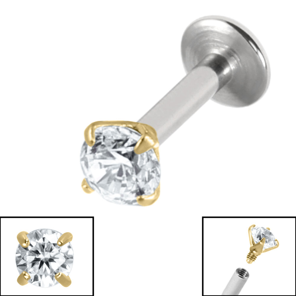 Titanium Internally Threaded Labrets 1.6mm - Titanium Claw Set Round Jewel