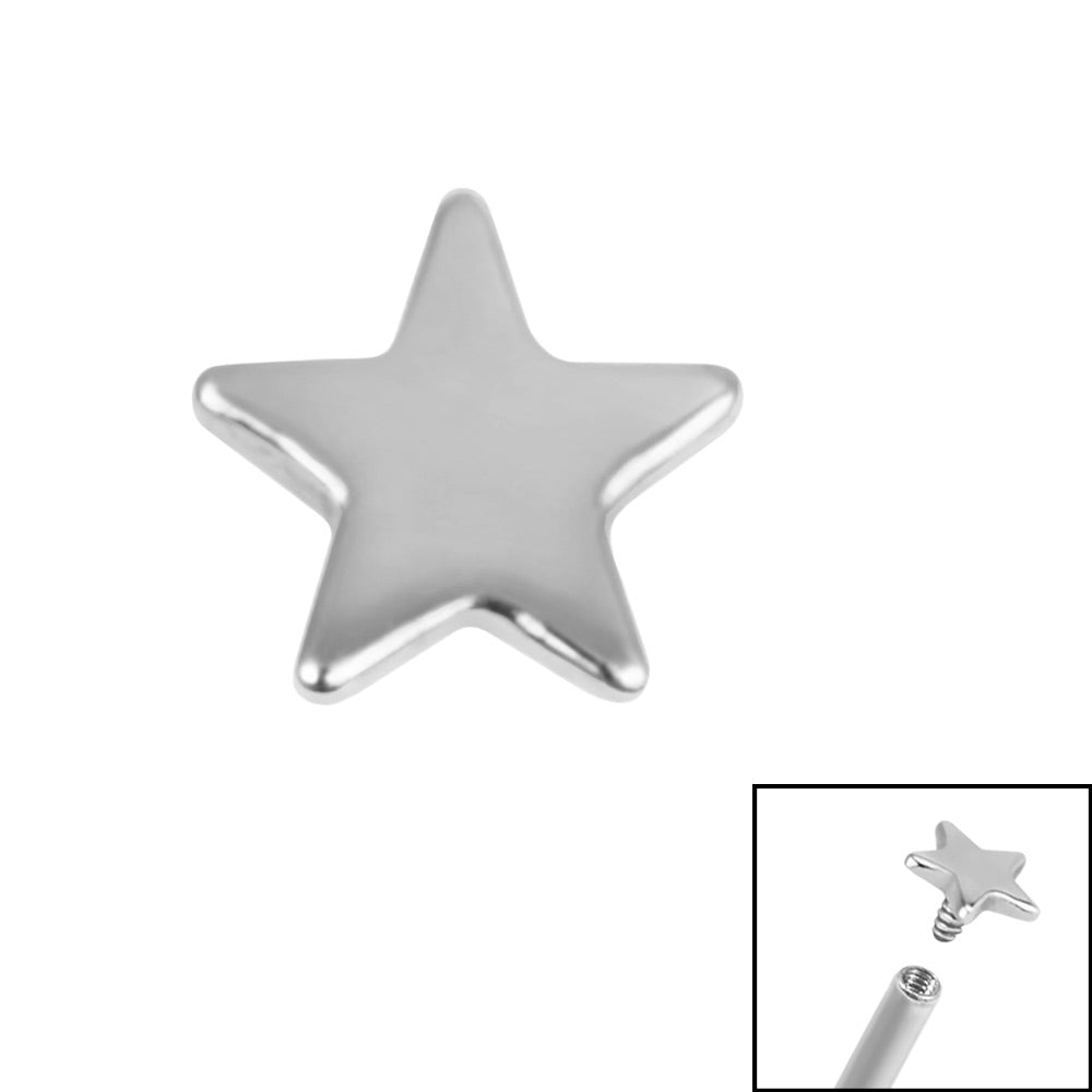 The Titanium Star is available in Mirror Polish Titanium as well as Gold Titanium. The Star is 2.9mm point to point. For internal threaded shafts measuring 1.2mm and has the standard 0.9mm thread on it. This attachment will fit TDi Body Jewellery internal thread Labret Studs, Bars etc.