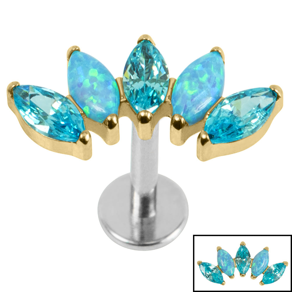 Titanium Threadless Labrets - Gold Titanium (Bend-fit) (Infinity) Claw Set 5 Marquise Opal and Jewel Fan